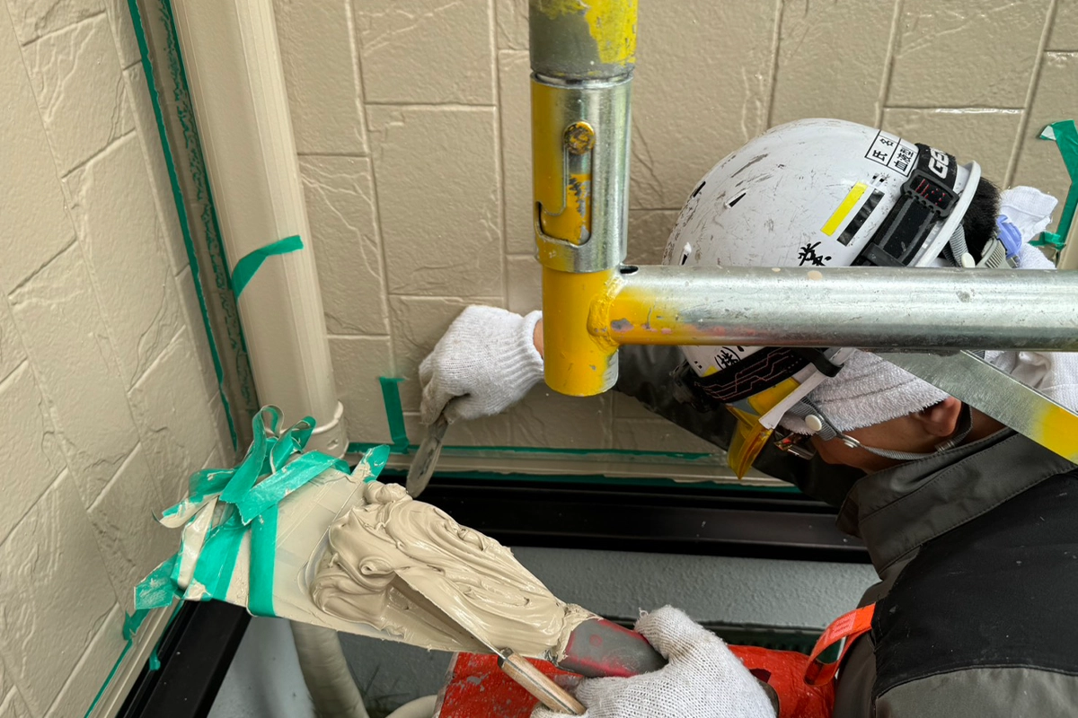 塗装を行う前に割れたシーリング材や外壁に入ったクラックがあれば補修工事を行います。(この作業を怠れば塗装で仕上げた際にそのままクラックが残ってしまったり、数年後、水がシーリングの切れ目から塗膜の中に入り込んで膨らんでくることがあります)