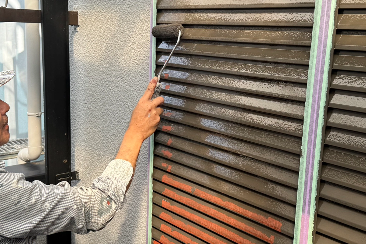 まず最初に下塗りを行います、この作業を怠ると塗膜が剥がれてきたり、実際の塗料の耐久年数より早く劣化してしまいます。